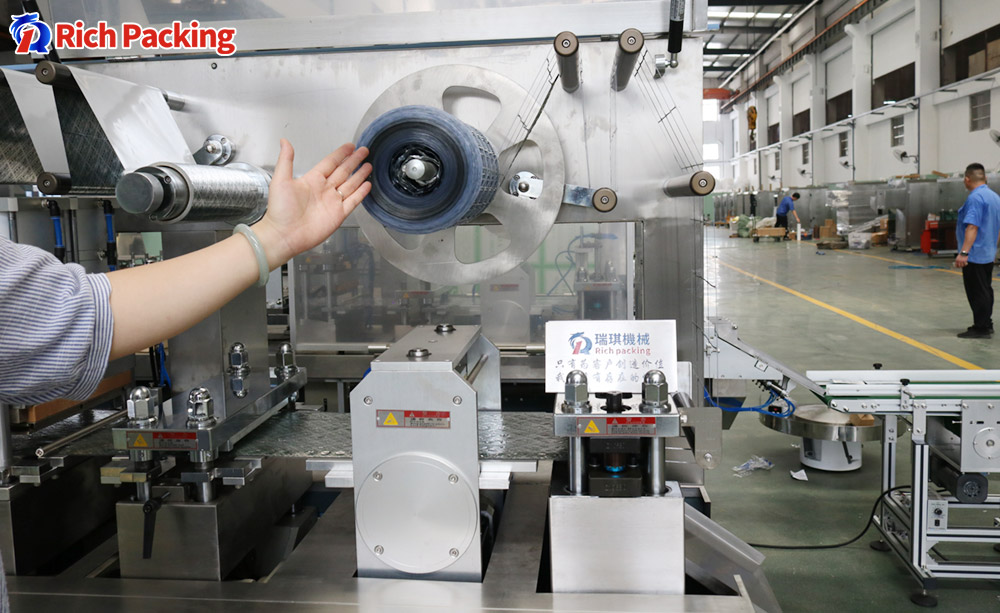 Flat-plate aluminum-plastic blister packaging machine aluminum-plastic reel: sentence includes two parts: aluminum foil reel and plastic film reel. The reel is mainly composed of a cylinder, an inner and an outer stator, a brake ring, and an adjusting nut. The two ends of the cylinder are supported on a supporting shaft with rolling bearings, which are the rotating parts of the reel. When the plastic film or aluminum foil is pulled, it drives the assembly. The roll material on the reel rotates freely. The stator is divided into inner and outer stators, and the sliding sleeve is on the cylindrical surface of the cylinder body, and is fixed at any position of the cylinder body by fixing screws to install and fix coils of different widths.