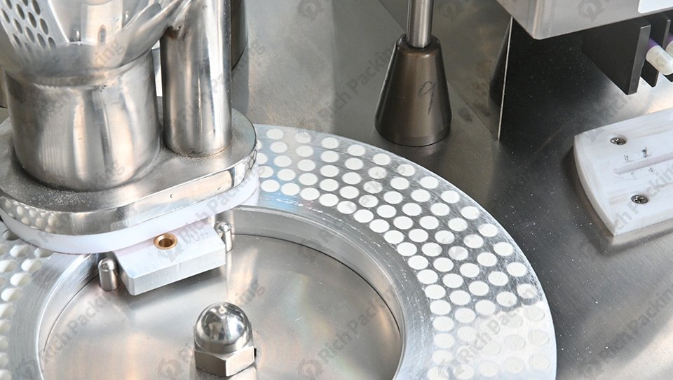 - d. Sealing the Capsule: The operator manually places the capsule tray filled with medicine onto the capsule sealing station, where the machine automatically seals the upper half of the capsule shell to the lower half.