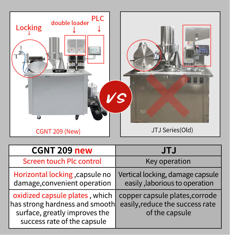 This 209 model of the CGN series semi automatic capsule filler are made to done the work of the filling capsule. 209-CGN can accomplished the making capsules of the hard hollow type to 40,100 per hour,good to the size ofgel shell capsules from the size 000 to the size 5 by CGN-209. 209 models for using in the small scales factory and small pharmacy, and the semi capsule filler will automatic finish the feedings materials by 209, you only need to transfer the seeding tray of 209.